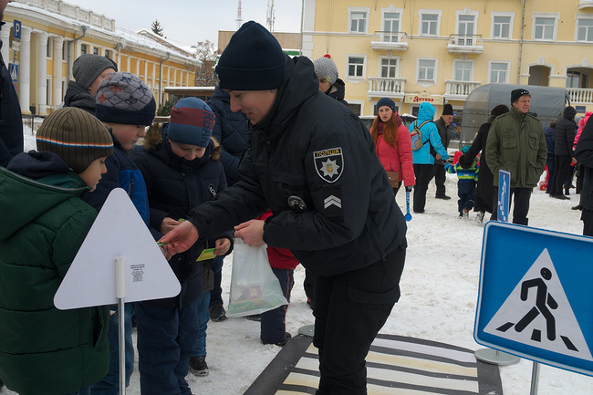 – Эта акция проходит в Украине уже второй год подряд. В этот раз на нее откликнулись тридцать городов, и не только областных центров, но и многих других где работает патрульная полиция. Акция, как праздничная, так и просветительская, потому что кроме автомобилей мы привезли еще небольшой городок в котором детям рассказывают о их безопасности, о правилах дорожного движения, о всем том с чем они сталкиваются в жизни, но не всегда на это обращают внимание, – говорит Виталий Копыстко, пресс-секретарь патрульной полиции в Черниговской области.