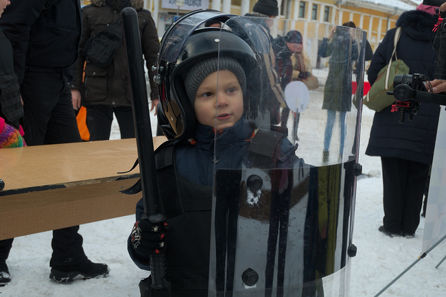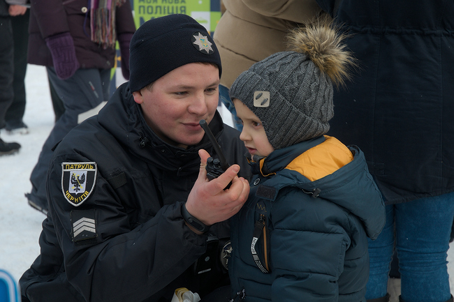 Пока на главной сцене фольклорные коллективы пели колядки, все желающие могли примерить на себя экипировку патрульной полиции, узнать о правилах движения и покататься в полицейской машине.