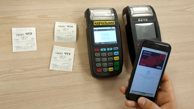 Після коротеньких виступів представників прес-брифінгу Євген Лісяк продемонстрував як виглядає процес оплати проїзду за допомогою Apple Pay шляхом прикладання мобільного телефону до терміналу.