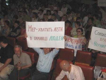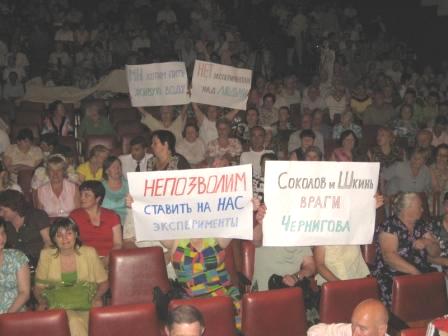 Громадські слухання, що відбулися 10 червня, з приводу підвищення тарифів на послуги водопостачання та водовідведення для населення, а також стосовно ініціативи керівництва КП «Чернігівводоканал» додавати у воду, яку споживають городяни, поліфосфат натрію, перетворилися на майже тригодинний мітинг та піар окремих політичних сил. Голосування, яке відбулося в залі міського палацу культури, представники міської влади назвали незаконним і під вигуки “Ганьба” покинули зал. Слухання були зірвані...