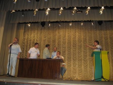 Впродовж наступних двох годин слухання перетворились на піар певних політичних сил та громадських організацій. На сцену один за одним вибігали: то представники УНП, то “Народного контролю”, то блоку Наталії Вітренко. А депутат Новозаводської районної ради Андрій Глухенький навіть подарував Олесандру Шкіню “Калгон” та запропонував випробувати хімічну добавку на собі.