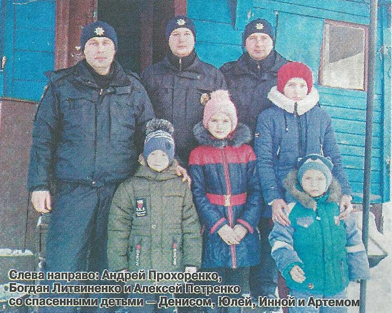 Сейчас я всех подробностей и не вспомню, потому что мы тогда на эмоциях были. Помню только, что я вынес старшую, Инну. А приблизительно через минуту приехали пожарные. Алексей Петренко с отцом детей остался возле дома помогать им, а мы с Литвиненко посадили маму с детьми в служебный автомобиль и отвезли в райотдел, потому что они без верхней одежды были, а на улице холодно.