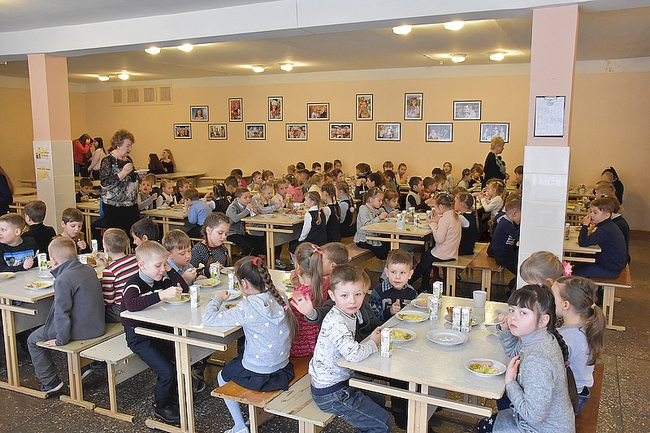 Школа №16, на першій перерві снідають 1, 2 і 7 класи: