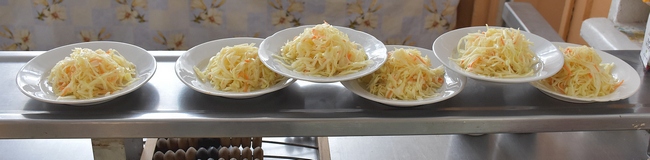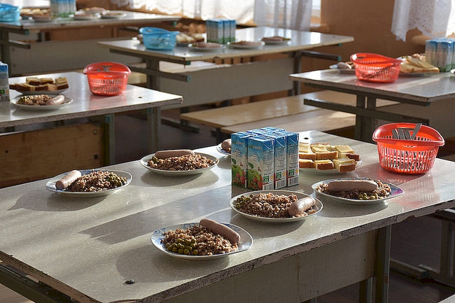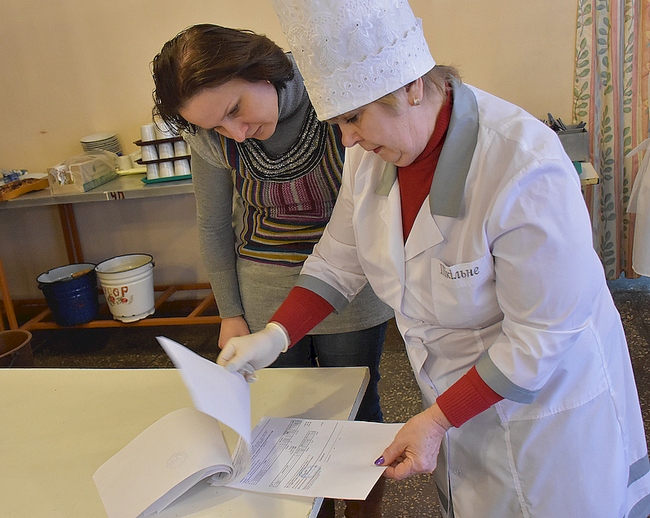 - Продукти я одержала сьогодні. Ми готувалися до канікул і багато що закінчували «під нуль»: ні сирого м’яса, ні будь-яких продуктів швидкого псування не залишали. Тільки те, що підлягає тривалому зберіганню: наприклад, маргарин, картоплю. Навіть інші овочі – моркву, буряк, капусту – одержували вже сьогодні. Привозити почали з самого ранку. Наша школа йде першою по розвозці і в 6.00 год. вже привозяться м’ясо та ковбаси, потім о 7.00 - молоко. Поставка продуктів до нас тричі на тиждень: понеділок, середа і п’ятниця. Наприклад, у складі сніданку сьогодні сосиска – це отримано сьогодні.