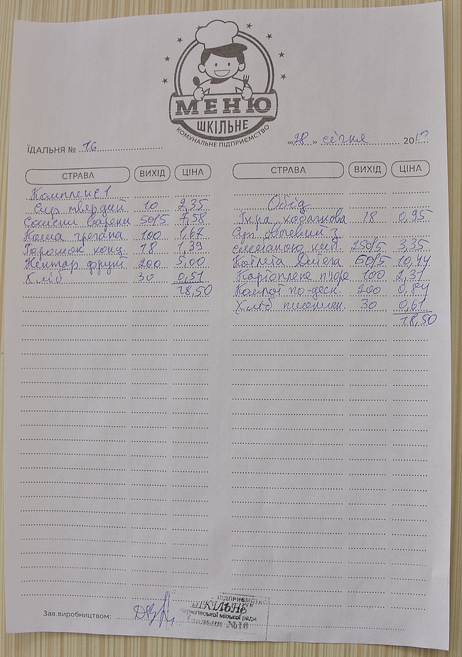 - Зараз ми розпочали роботу вже з новою вартістю харчування і з новим постачальником молочної сировини. Від зміни вартості сніданків і обідів ми ніякого додаткового прибутку не отримуємо, вона пов’язана тільки зі здорожчанням продуктів. Попередня ціна харчування розраховувалася більш ніж рік тому й за цінами того часу. Здорожчання відбулося на 2,5 грн, порція тепер коштує 18,5 грн. Міський бюджет, як і раніше, 8 грн. з них учням 1-4 класів відшкодовує.