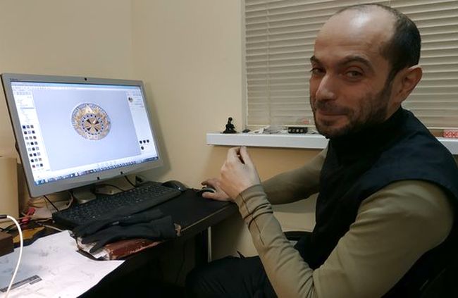 Ювелир-модельер Роман Черняк, 40 лет - занимается проектированием, 3D-моделированием, созданием эскизов будущих изделий и изготовлением моделей в воске. Роман пришел на производство 15 лет назад, учился у Владислава Поклада. Является настоящим профессионалом своего дела.