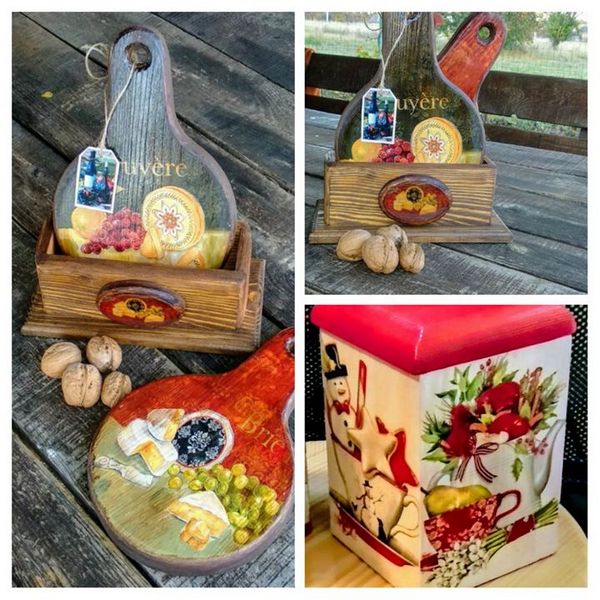 Скільки оздобили жіночі руки гарних дерев’яних речей – не злічити. Можна тільки годину самі фотографії переглядати! Очі розбігаються! У кожну роботу майстриня вкладає частинку свого серця. Заготовки – із вільхи, бука, сосни. Зображує на них малюнки за допомогою декупажних карт, також може переносити зображення з фотографій. У її доробку – підноси, кухонні короби для зберігання, цукерниці, серветниці, міні-комоди для жіночих прикрас, органайзери для косметики, ключниці, вішачки, підсвічники, рамки-віконця для фотографій чи картин, новорічні іграшки, підставки для смартфонів, олівців і ручок, різноманітні шкатулки та багато іншого.