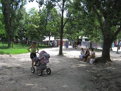 Вчера 15 июня около 19.00 приехал небольшой микроавтобус и грузчики начали выгружать деревянные щиты и металлические конструкции на пятачке у входа на рынок, где черниговцы обычно торгуют подержанными вещами. Это привлекло внимание молодых мамочек, которые гуляли рядом с колясками. На вопрос, что происходит, им сообщили: здесь будет пивная палатка, музыкальный автомат и рядом – биотуалет.