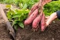 Цей овоч збирають на початку вересня. Батат ще називають солодкою картоплею, у нас вирощують як екзотику, родом з Америки. Як, до речі, і картопля. Другий рік садить батат замість картоплі Ольга Хоменко з Борзни. — Подобається, що особливого догляду солодка картопля не потребує