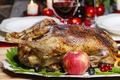 Фаршируем гуся ганабобелем и оставляем еще на пару часов. Потом кладем в рукав для запекания, плотно заворачиваем и ставим в духовку. Если гусь молодой, запекаем 15 минут при температуре 210 градусов, затем снижаем температуру до 185 градусов и запекаем еще 35-40 минут, последние 10 минут — при 165 градусах.