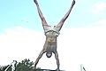 Каждую неделю 10-12 парней крутят разные фигуры на турнике в районе швейной фабрики. Они чувствуют себя орлами и называют турникменами. Воскресенье, три часа дня. Проспект Победы, 54. За магазином «Квартал» на спортплощадке рядом с качелями и детской деревянной машиной — три турника.