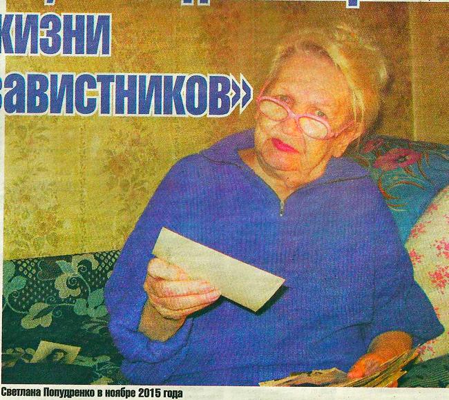Светлана Попудренко — дочка Героя Советского Союза, партизана Николая Попудренко. Он погиб 37-летним, в 1943 году, в Щорском районе (есть разные версии — где именно и при каких обстоятельствах. Официальная — возле села Софиевка). Похоронен в сквере напротив Черниговского горсовета. 77-летняя Светлана Попудренко живет в Чернигове с сыном Назимом, ему 57.