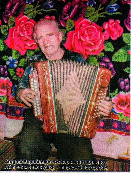 Полюбившаяся девушка была очень на неё похожа. Познакомились в Носовке, где оба были на уборке свеклы. Андрей с гармошкой — всегда «центровой». Анна — тихая, стеснительная. Краснеет, опускает глаза. Не такая красивая, как другие, не такая смелая, а засела занозой в сердце: даже если захочешь — не вытащишь,