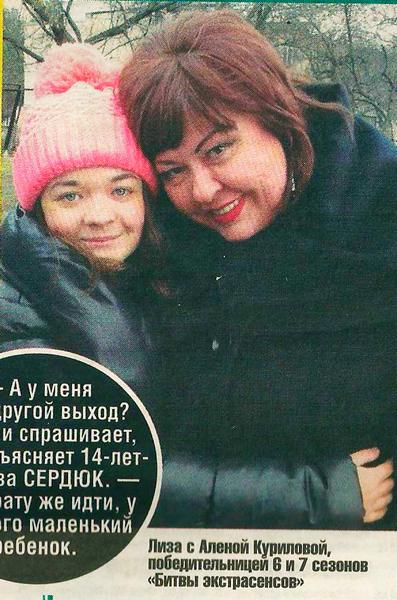Во время съемок выяснилось, что мать девочки 44-летняя Елена Сердюк серьезно больна — метастазы поразили кость. Уже около четырех месяцев женщина борется с раком в столичной клинике.