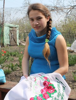 Швидко працюють тоненькі пальчики, підбираючи ниточки, вміло вплітають їх у красивий візерунок. 14-річна Аліна Ярмак з Осокорівки, що на Бобровиччині, вишиває рушник – символ нашої неньки-України. Ясні очі поглядають у бік захопливих поглядів. Захопливих не лише через те, що робота складна для підлітка, а насамперед через особливість дівчини, яка вправно працює лівою рукою. Чи була б вона шульгою, якби не вирок, що поставили дитині у лікарні після народження – парез Ерба-Дюшенна, невідомо. Та головне, що Алінка займається улюбленою справою попри функціональні обмеження – вишиває і випікає торти й тістечка на будь-який смак.