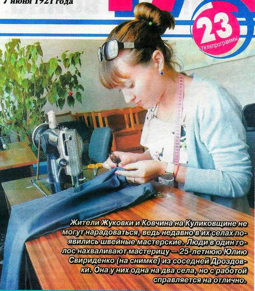 Но, несмотря на это, Юлия говорит, что довольна работой. Радуются и жители Жуковки и Ковчина, которым раньше приходилось возить вещи в ателье в Ку-ликовку, а это неудобно. Особенно пожилым людям.