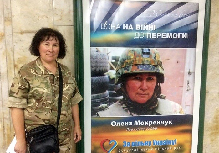 Ще торік на станції київського метро «Майдан Незалежності» побачила яскраві плакати «Вона на війні до Перемоги!» з портретами героїнь Збройних сил України. На одному з них – прес-офіцер 72-ої окремої механізованої бригади (ОМБр) Олена Мокренчук. Прізвище знайоме, бо старший прес-офіцер ОК «Північ» після ротації ставала на облік в Чернігівській обласній організації Національної спілки журналістів України. Подекуди такі плакати й донині у столичній підземці.