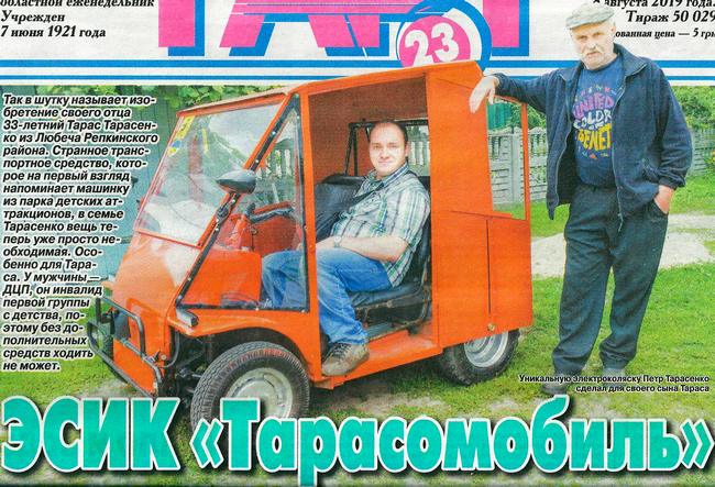 — ЭСИК - электрическая самоходная инвалидная коляска. Это название предложил папа, а вот «Тарасомоби-лем» назвал знакомый, когда увидел, как мы его собираем. Так и прицепилось, — улыбается Тарас.
