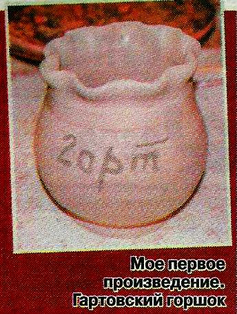 На прощание мастер предлагает и мне попробовать сделать что-то из глины. Сажусь за гончарный круг и начинаю «творить». Олег Станиславович помогает. Уже через 20 минут из-под моих рук выходит горшок. Он особенный — гартовский.
