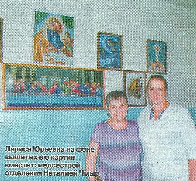 Из родных у Ларисы Юрьевны есть еще внук — сын дочери, но он живет в России. Больше пойти не было к кому. На новом месте, в отделении «Хоспис» Ичнянской райбольницы, от одиночества спасало любимое занятие — вышивание. Некоторые ее картины, взятые в рамку, украшают больничный коридор.