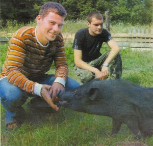 У місцевих я купив п'ять в'єтнамських свинок і кабанчика. Вони пройшли карантин (пожили в загорожі), а тепер вільно гуляють навколо будинку. Хлюпаються неподалік у копанці. З дня на день у свиноматок має бути потомство. Привезли сюди і кролів. Наступного року плануємо розчистити ставок і завести гусенят. Одне слово, хочемо організувати тут фермерське господарство.