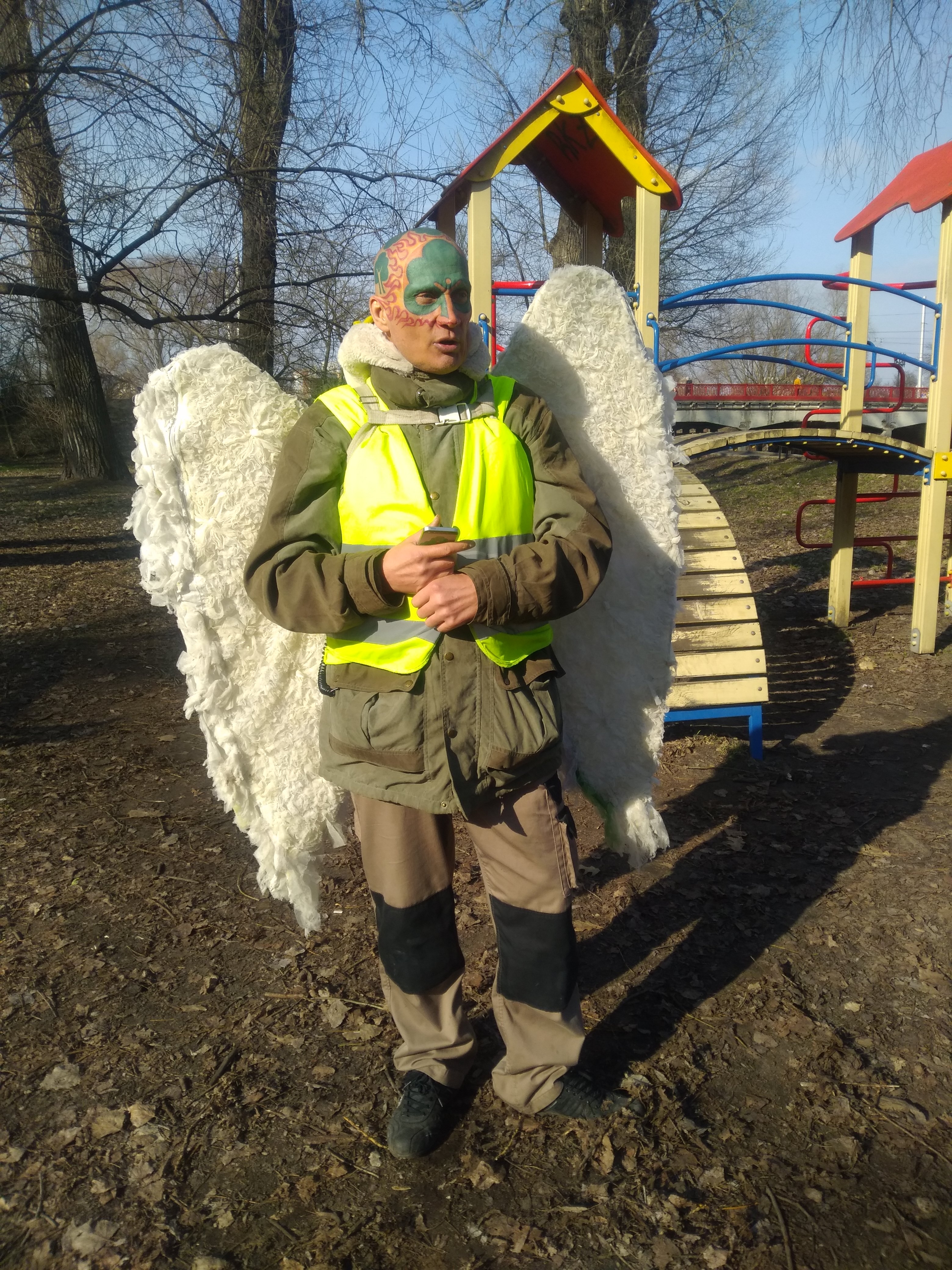 - Они, как руки у дерева, это летающее дерево, вот здесь внизу зеленая ленточка, это дерево прорастает. А крылья - это значит, что я посланец архангелов. Оттуда же имя Древ - архъ.