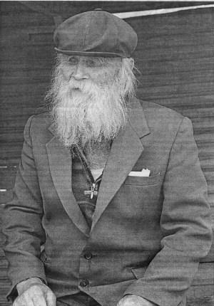 Нашли мы его сразу, ведь колоритного бородача трудно было не заметить (в сельсовете нам описали его). Дедушка сидел возле магазина и своим внешним видом чем-то напоминал сказочного героя. Он как раз делал самокрутку. Спросили у женщин, которые разговаривали неподалеку, действительно ли это тот самый Александр Орловский.