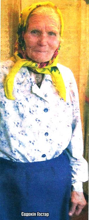 Євдокії Гостар 90 років (14 березня). Євдокія Федотівна живе сама, в селі Іллінці Борзнянського району. Бабуся все життя співає і зараз ходить на репетиції хору до клубу в село Оленівку. Два кілометри до траси, там ловить попутній транспорт і під’їжджає до Оленівки.
