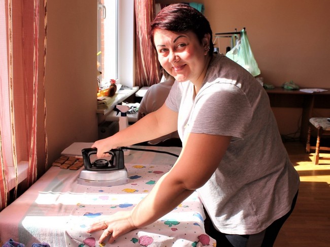 «Я з радістю допомагаю, бо ми зараз на карантині. Шити так, як шиють дівчата, я не вмію, тож прасую і ріжу викрійки, – говорить Вікторія. – Мені здається, допомогти може кожен. Було б, як кажуть, бажання. Я не приховую: за день ми дуже втомлюємося. Спина, ноги болять, але зараз така ситуація, що ми не маємо права звертати увагу на дрібниці».