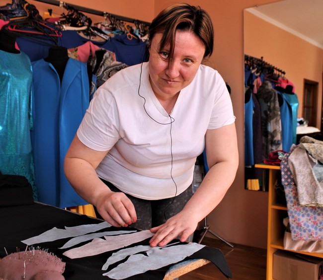 Наталія Сенченко розповідає і продовжує різати тканину. Жінка націлена не лише на якість, а й на кількість.
