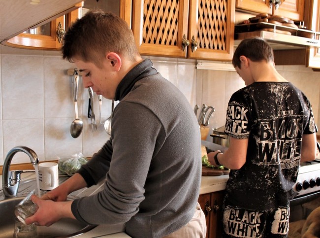 «Можемо і млинців напекти, і биточки зробити… Ну а картопля, каша – то взагалі легко, – зізнається трохи сміливіший Даня, який саме нарізає салат.