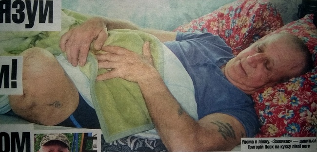 — Я в «швидкій», — згадує Григорій Миколайович. — Друг, Анатолій Подоляко, колишній афганець, ногу тримає. Держав оту культяху, усю у крові. На одній шкурі трималося воно. Я кричу: «Брате, попусти джгут! Хай цвіркне трохи кров, я терпіти не можу». «Не можна, не можна! Бо й так кров зійшла», — умовляли і друг, і жінка, і медсестра.