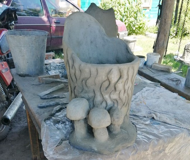 «Часу займає не так вже й багато, – говорить майстриня. – Якщо цемент гарно висихає, то тиждень – і виріб готовий. Головне, щоб дощу не було, бо сушу я їх на вулиці. Коли висохне, розмальовую звичайною фарбою».