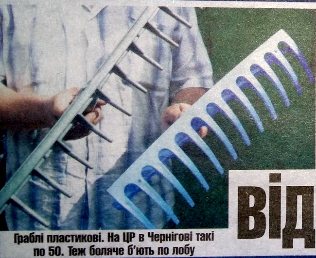З забиттям лоба зазвичай не звертаються, — пригадує Валерій Василинчук, обласний хірург. — Звичайно, таке часто буває. Побутові травми сільгоспзнаряддям — чи не найчастіші. Влітку сапки, навесні і восени граблі та вила. Про тяжкі травми голови від грабель не чув. Наступили, посміялися чи поплакали, й забули. Дірки в ногах були. Кинув граблі у траву, тоді біжить, наступив, — пробив ступню.