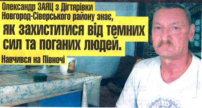 Олександр Заяц з Дігтярівки Новгород-Сіверського району знає, як захиститися від темних сил та поганих людей. Навчився на Півночі