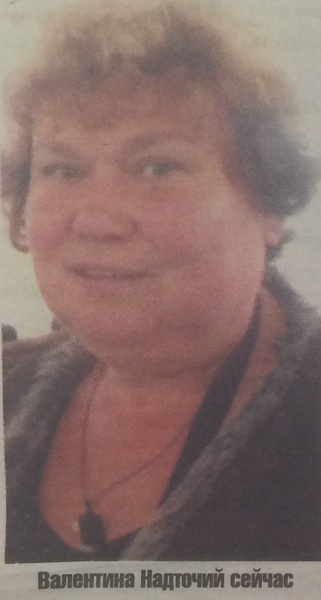 Она торгует свининой в мясном павильоне Черниговского центрального рынка. Живет в Киенке. Дети — Василий и Виктория. У них свои семьи. А родилась Валентина Надточий в Шестовице Черниговского района. В 1973 году возле этого села снимали драму о летчиках-истребителях.
