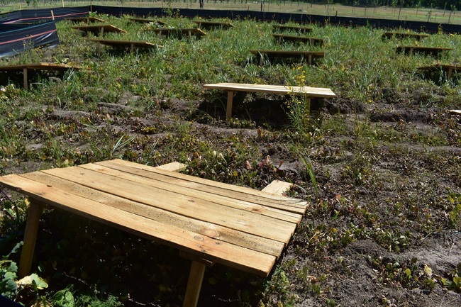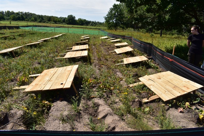 Власне ферма — це ділянка в кілька десятків метрів, огороджена цупкою плівкою 70 сантиметрів заввишки. Нижній край огорожі вкопаний в землю. Весною цю ділянку засівають сумішшю перко, конюшини, ріпака та інших трав і забезпечують постійне зволоження.