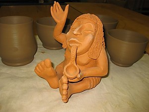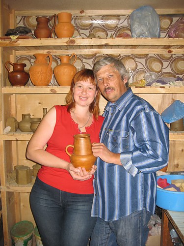 И, если уж совсем откровенно, в мастерской керамики Ира нашла не только занятие по душе, но и свою вторую половинку. «Я познакомилась с Романом в ноябре 1998 года, когда однажды пришла в мастерскую и встретила там его», - рассказывает она. «Ира сначала увлеклась скульптурами, потом начала делать картины. Она ходила к нам в мастерскую лет пять, а потом мне надоело провожать ее домой, и мы сыграли свадьбу. Выходит, глина нас свела», - поделился он. Сейчас практически все время они проводят вместе – и дома, и на работе. Рассказывают, что в мастерской для двоих обычно проводят намного больше времени, чем в городской квартире. И при этом их глаза светятся радостью.