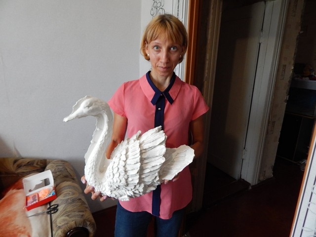 Не менш вражаючими є й роботи Анастасії з гіпсу. Своє знайомство з ліпниною вона розпочала близько чотирьох років тому. Це, мабуть, одне з найвиснажливіших хобі молодої жінки, адже щоб замісити гіпс і швидко, до його застигання, залити в форми, потрібно докласти чимало фізичних зусиль. Жінка створює як напівзалиті (наприклад, сувеніри- скарбнички), так і повністю залиті фігури. Найулюбленішою своєю роботою Настя вважає гнома висотою п’ятдесят сантиметрів та вагою двадцять п’ять кілограм.