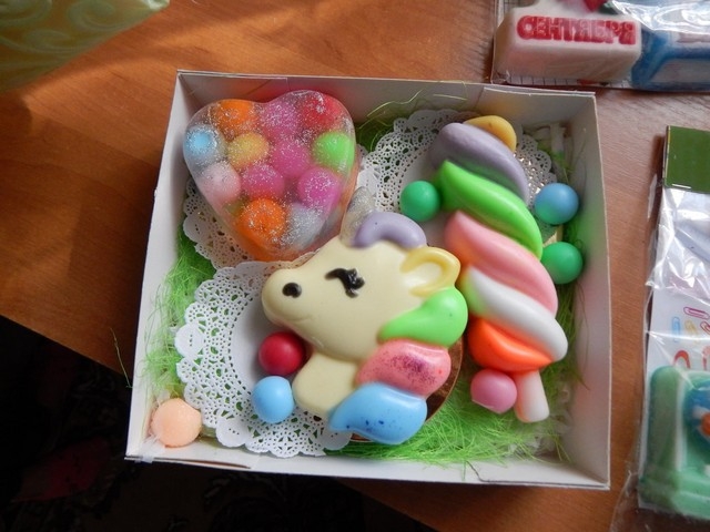 -- Для свого мила я використовую англійську основу, яка не так швидко змилюється. Брусочка мила вагою 60 грам вистачить на два тижні, — розповідає господиня. – Перші результати своїх спроб у миловарінні я випробовувала на собі та своїй сім’ї, щоб впевнитись, що вони зручні та безпечні для людей. Виготовляючи мило для своїх клієнтів, я завжди враховую їхні смаки та побажання. Адже кожен тип шкіри індивідуальний. Для кожного підбираю різні косметичні віддушки фруктів або трав, вітаміни та масла, щоб мило було не лише запашним, а й корисним. Створюючи кольорові експозиції, використовую лише натуральні барвники. Таке мило може зберігатись більше року. Воно не боїться прямих сонячних променів і кольори не вигоряють.