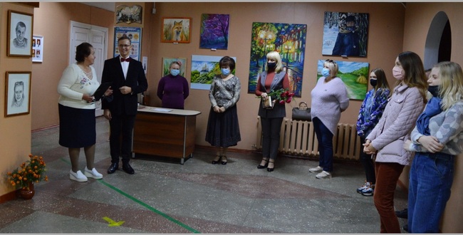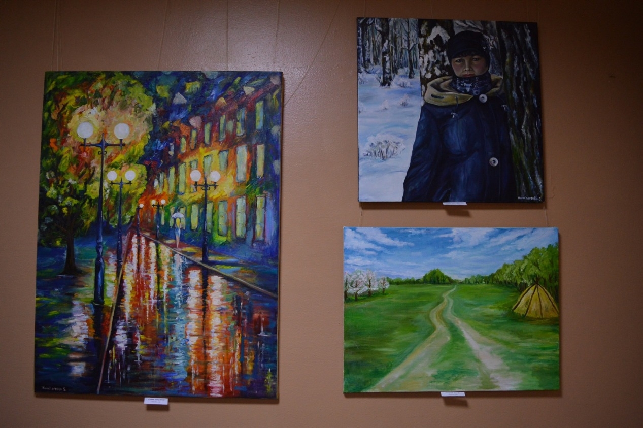 Свої картини для виставки Сергій збирав по всьому Чернігову і за його межами. Бо вони придбані поціновувачами його творчості. Через карантин презентація персональної виставки Сергія Гончаренка у Корюківці відбулася у родинному форматі. Про кожну роботу свого учня натхненно розповіла його викладачка Ольга Тихоновська.