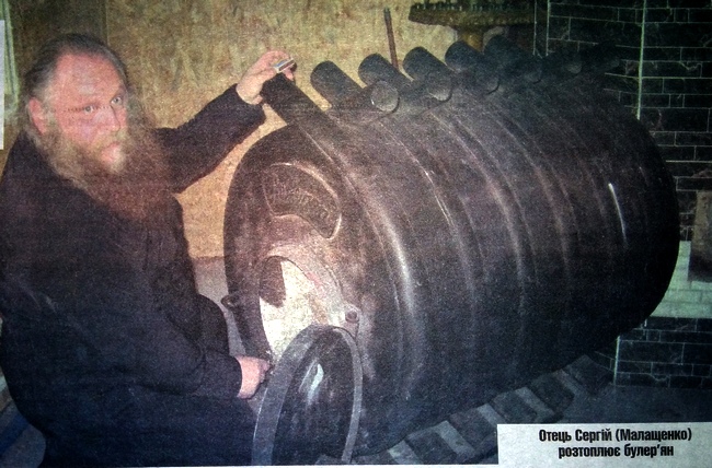 — Нержавійка з покриттям — пояснює, відкриваючи чудернацьким ключем ще одні двері, схожі на сейф зі шпіонських фільмів. — Щоб куполи поставити, треба дах переробляти. А ми ще всередині ремонт робимо, підлогу міняємо. Храм у нас гарний, ремонтуємо за людські копійки. Трохи лісгосп допомагає.