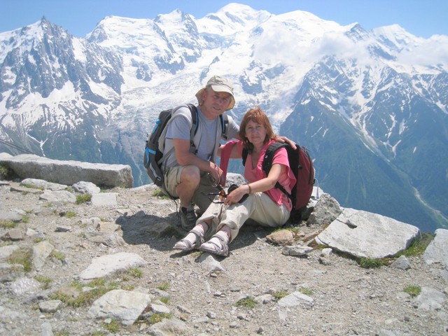 На фото подружжя Кулай на г. Бревент на фоні вершини Монблану