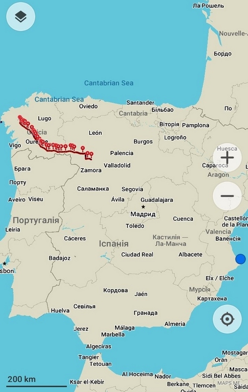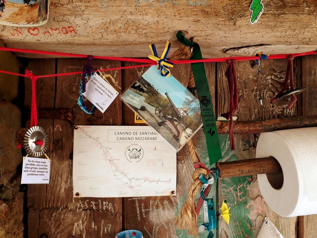 - До речі, в місцевих жителів є така традиція підтримувати пілігримів: в селах, де нема ні магазину, ні бару, вони облаштовують спеціальні пункти підтримки пілігримів, де зморена людина, в якої закінчилися припаси, зможе трохи перепочити, випити чашку чаю чи кави, поїсти печива, фруктів чи меду. Там же стоять спирт, перекис, серветки і т.ін. І поруч – нікого. Є малесенька скринька для «донатіво» - добровільних пожертвувань за таку підтримку. Дуже приємно було зустрічати на шляху такі доброчинні прояви гостинності людей в чужій країні.