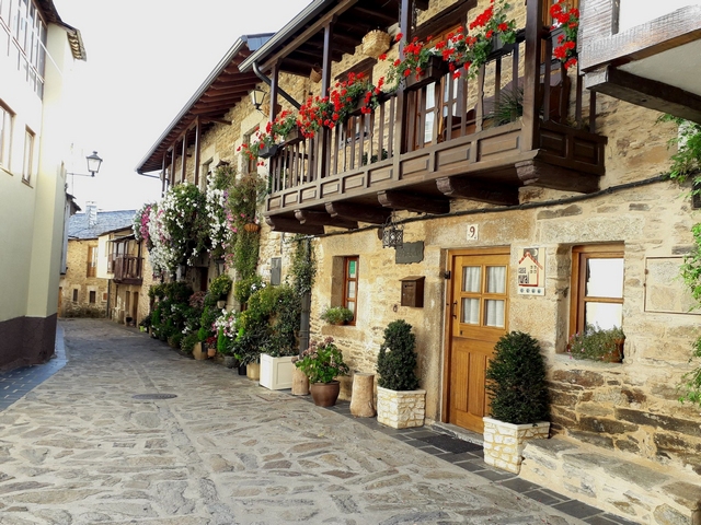 Старовинна вуличка з квітами на балконах – містечко Пуебла де Санабрія