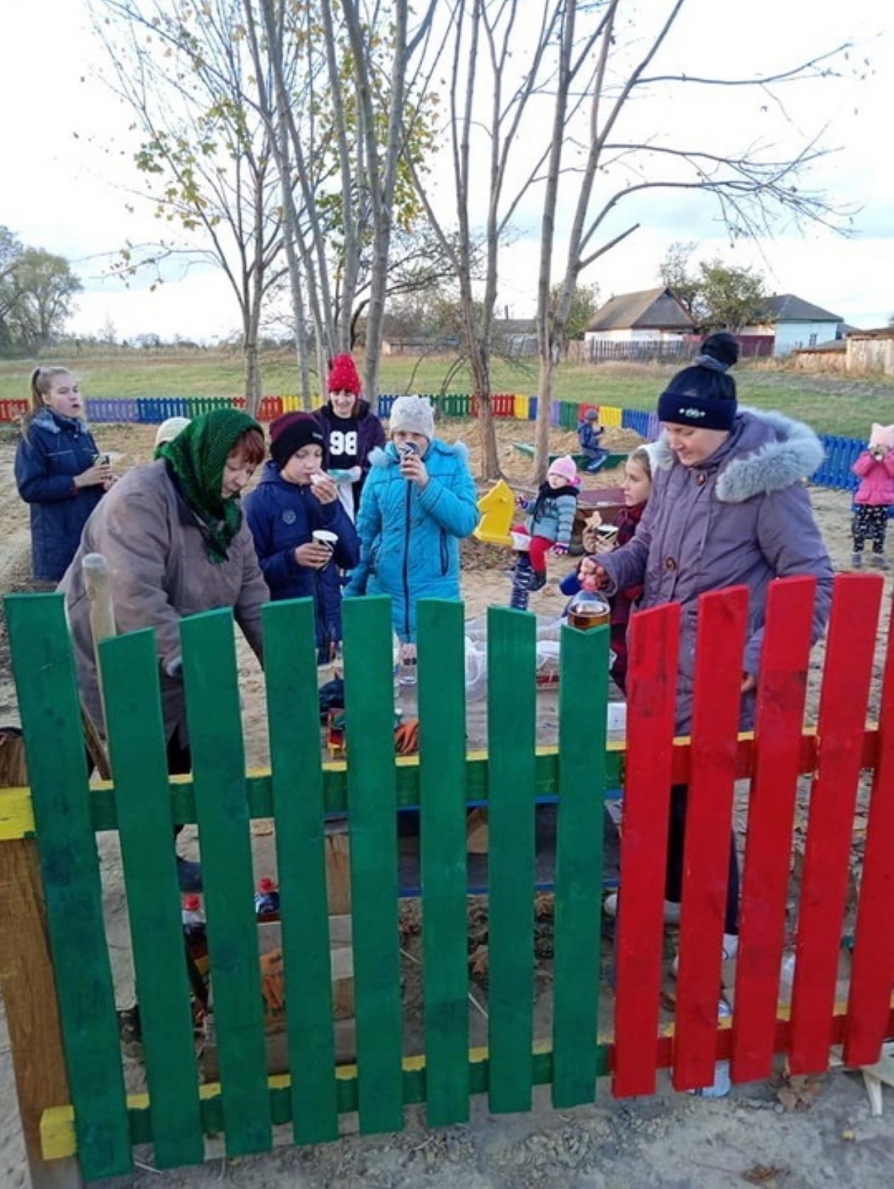 Олександр і Світлана кажуть, що найактивнішими, напевне, були діти. Вони бігали за дорослими й просилися допомагати. Спільно фарбували парканчик, придумали назву майданчику й прикріпили вивіску «Дружній парк». А потім усі разом пили лимонад і ласували смаколиками.