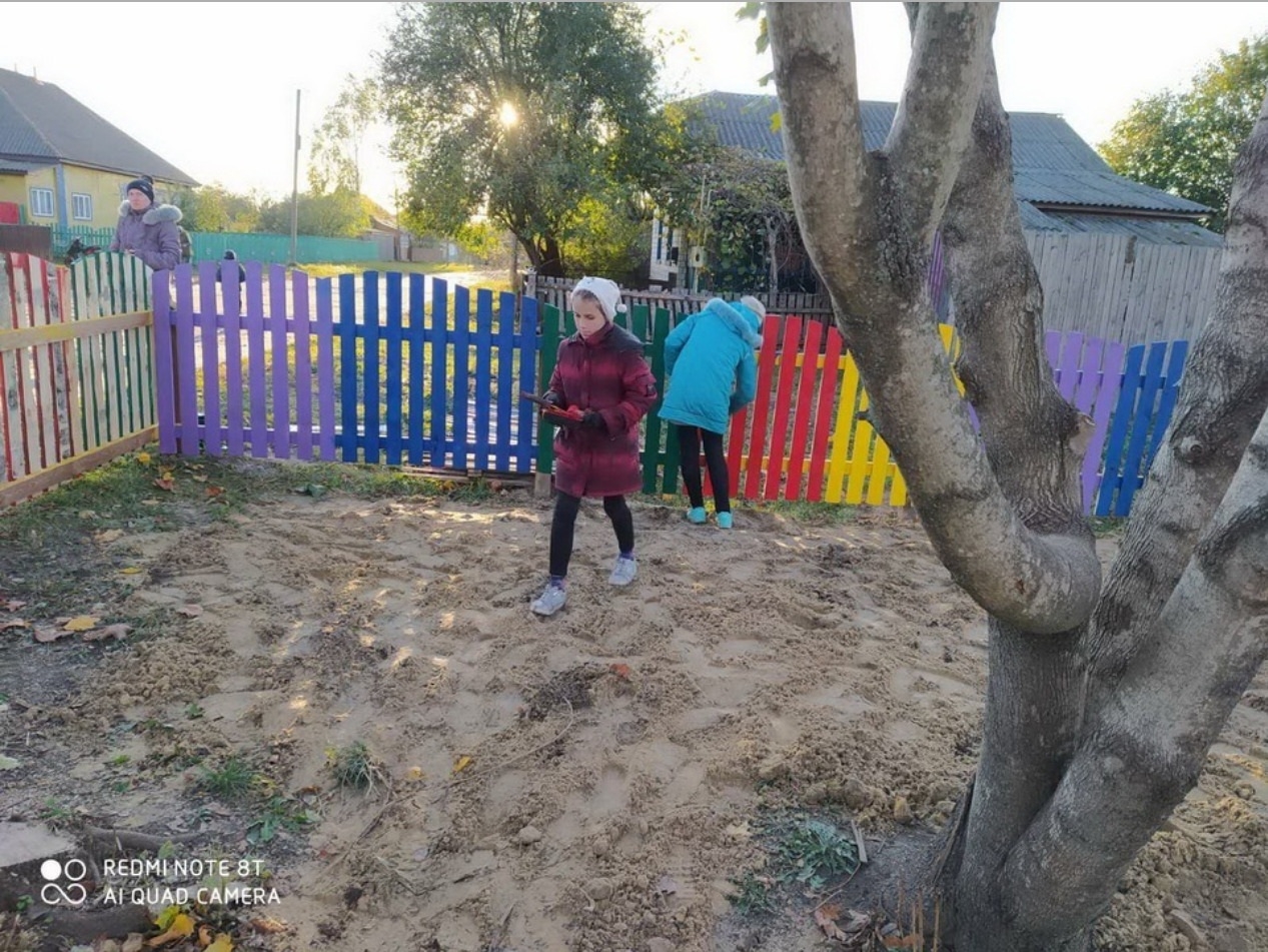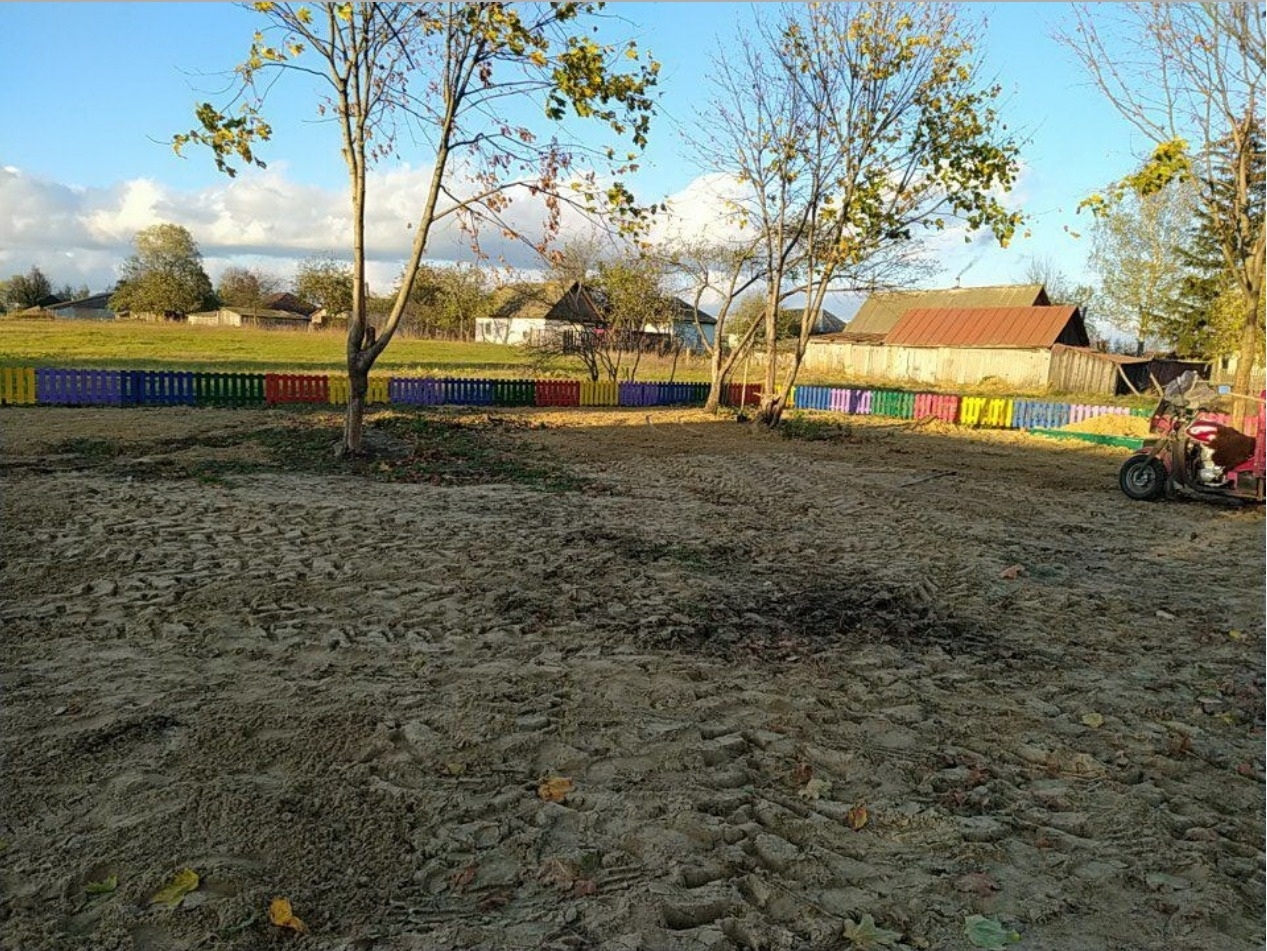 - Холминський держлісгосп надав нам штахетник і ворини для парканчика, — розказує Олександр Дорошко. – Ще й бульдозер виділяли, щоб корчі прибрати. Місцеве комунальне підприємство «Добробуд» забезпечило піском — завезли 9 причепів. Все красиво розрівняли, бо там же гратимуться діти.