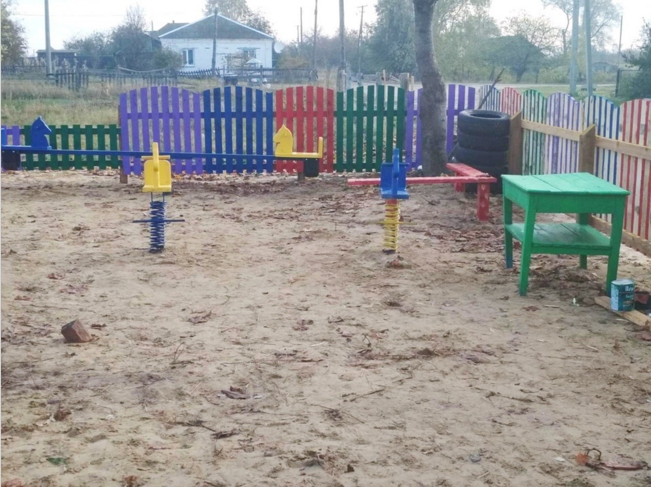 - Дивлюся: прибирають, розчищають, — розповідає Сергій. – Пішов і я. Мої ж діти там гуляють, треба допомагати. Парканчик разом з дорослими й малечею будував, виготовив декілька гойдалок, бо купувати дорого. Якийсь коник на пружині в інтернеті коштує понад 2 тисячі гривень. Я сам зробив два таких. Саша Дорошко матеріал дав, Влад Ворона – пружини з легкового авто. Хочемо ще гойдалку й карусельку. Вже підгледів ідею з екскаватором для дітей — обов’язково зроблю.