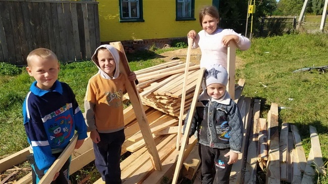 Селищна малеча радо допомагає дорослим будувати ігровий простір