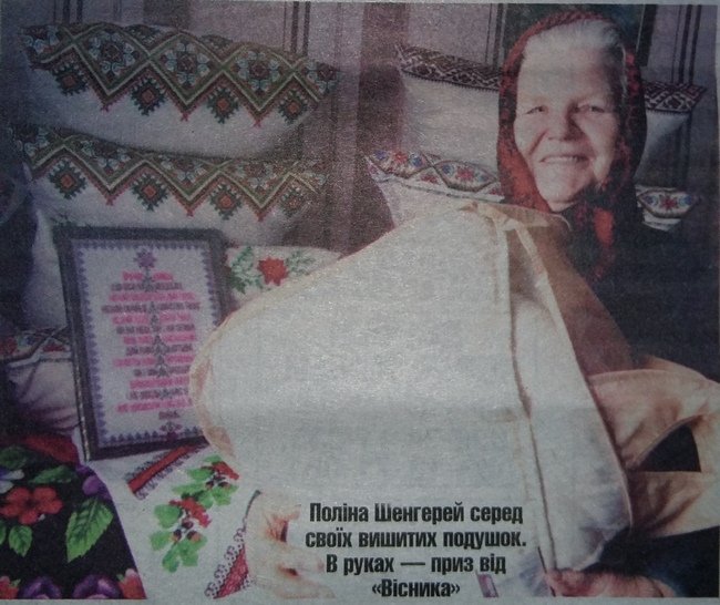 — До війни в сім’ї було дві дівчини. Та коли після війни інвалідом без лівої руки та ноги повернувся батько Антон Пилипович, він постарався зробити ще п’ять дівчат, — посміхається Поліна Антонівна. — Він косив, спираючись на костиль. Пас корів, плів корзини, допомагаючи собі зубами. Дівчат водив в ліс за шишками, які потім здавав ліснику, а за виручені гроші привозив з базару то гостинці, то іграшки для ялинки. Коли помер, в серці його знайшли осколок, який піднявся туди з коліна.
